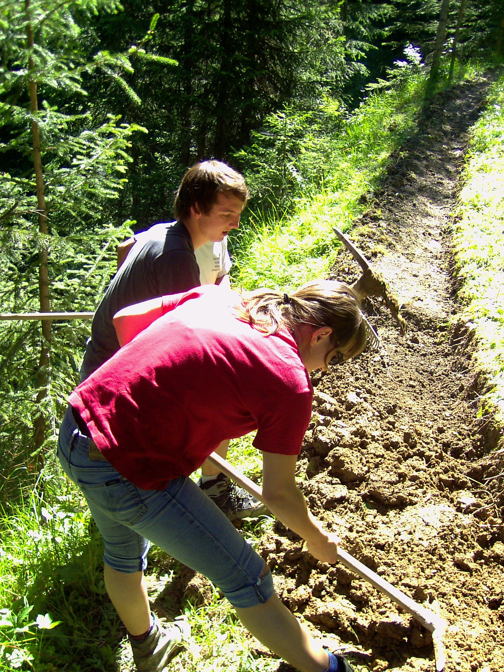 Carina und Christian bei Wegsanierung zur Echowand (Foto v. Florian Schmidlechner)